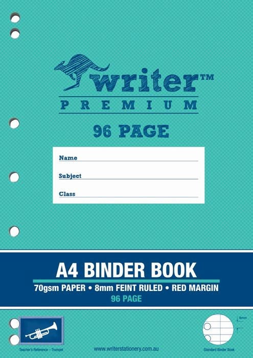 BINDER BOOK WRITER PREMIUM A4 96PG 8MM RULED + MARGIN TRUMPET — quality pet supplies available at Better Office Supplies.