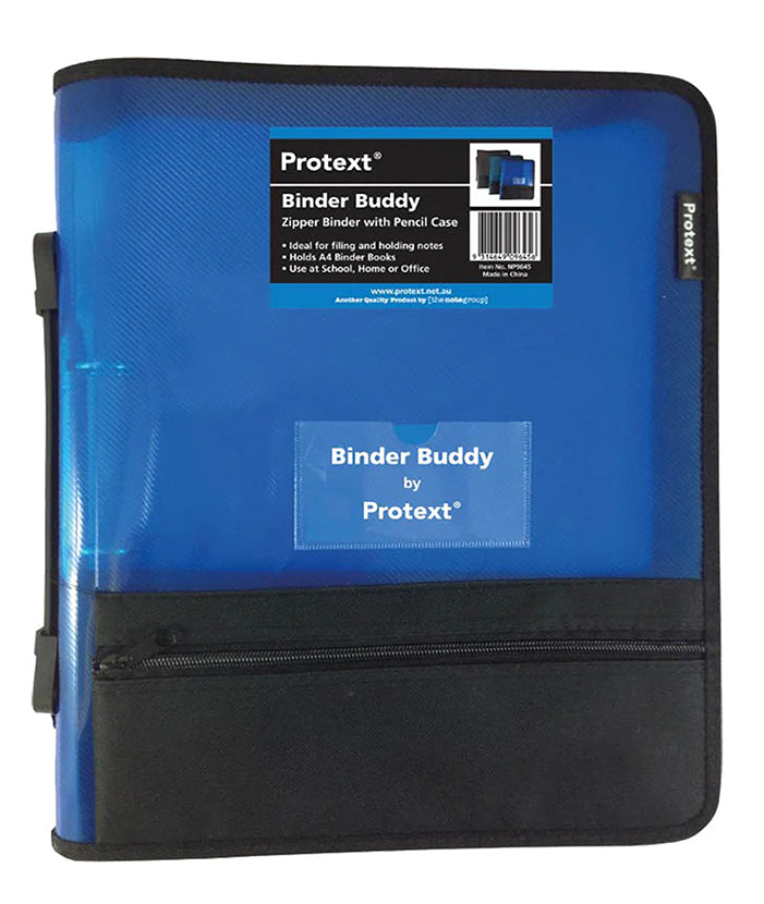 BINDER BUDDY PROTEXT A4 2 RING 25MM WITH ZIPPERHANDLEP/CASEPOCKETS BLUE — quality office supplies available at Better Office Supplies.