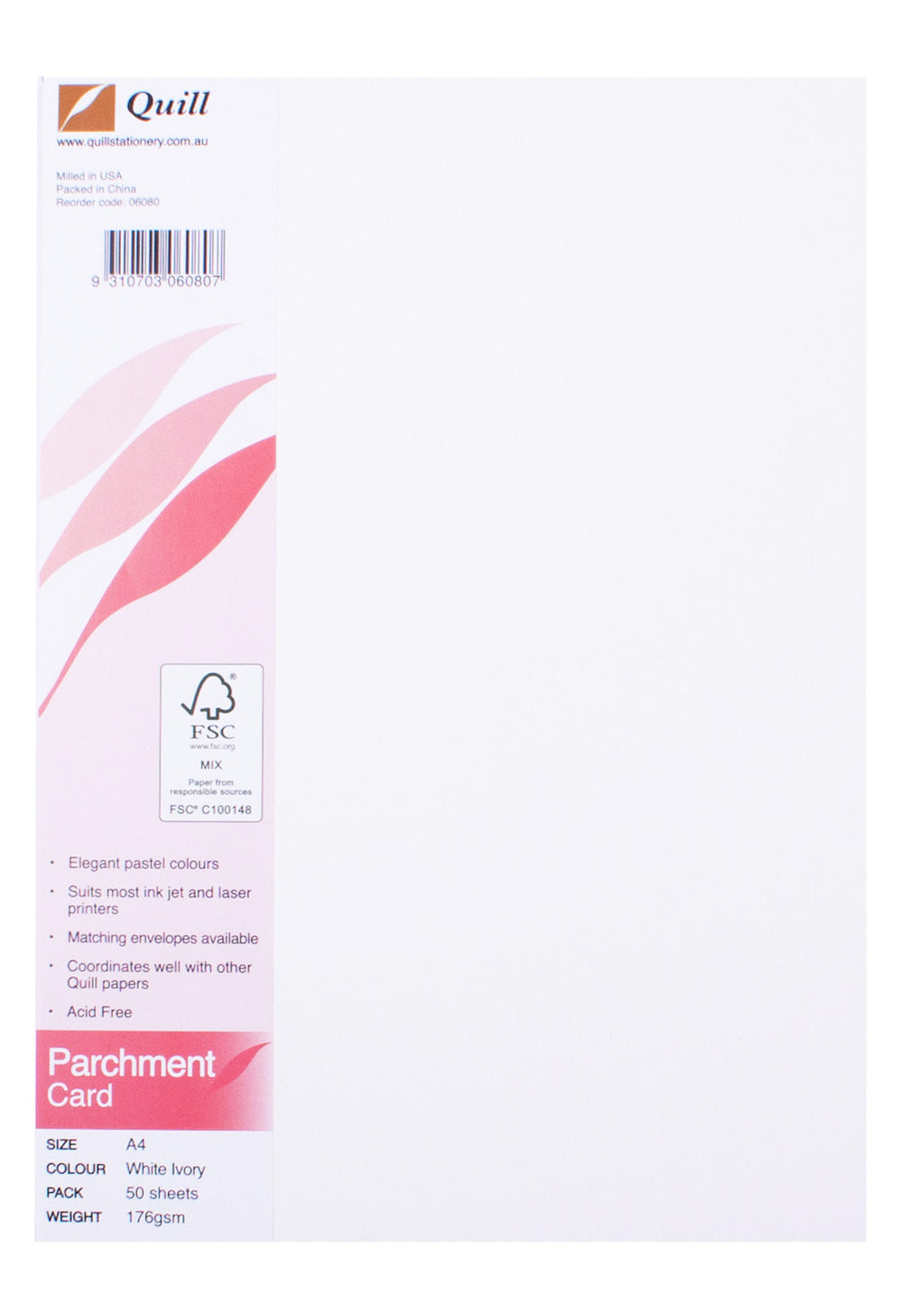 CARD QUILL A4 PARCHMENT WHITE 176GSM PK50 — quality office supplies available at Better Office Supplies.