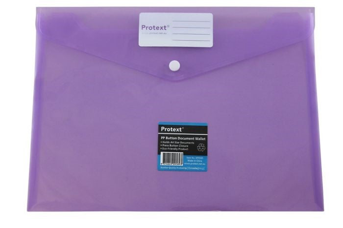 DOCUMENT WALLET PROTEXT A4 PP BUTTON CLOSURE PURPLE — quality office supplies available at Better Office Supplies.
