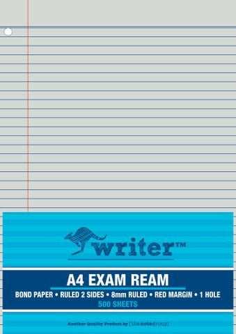 EXAM PAPER WRITER A4 55GSM 8MM RULED WITH MARGIN 1 HOLE PUNCHED — quality office supplies available at Better Office Supplies.