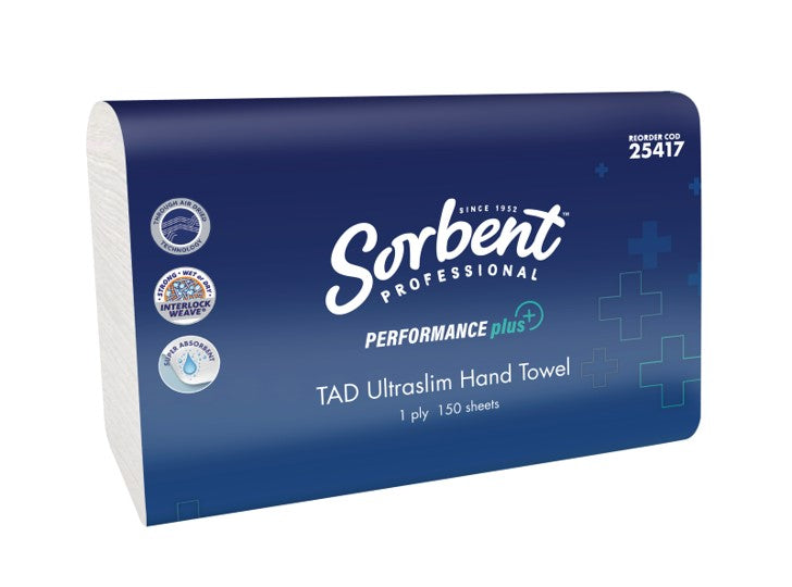 HAND TOWEL SORBENT PRO PERFORMANCE PLUS 1 PLY 150S TAD ULTRASLIM WHITE — quality office supplies available at Better Office Supplies.