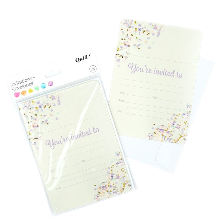 INVITATION CARDS & ENVELOPES QUILL 5 X 7 SEQUIN MULTI PK8 — quality office supplies available at Better Office Supplies.