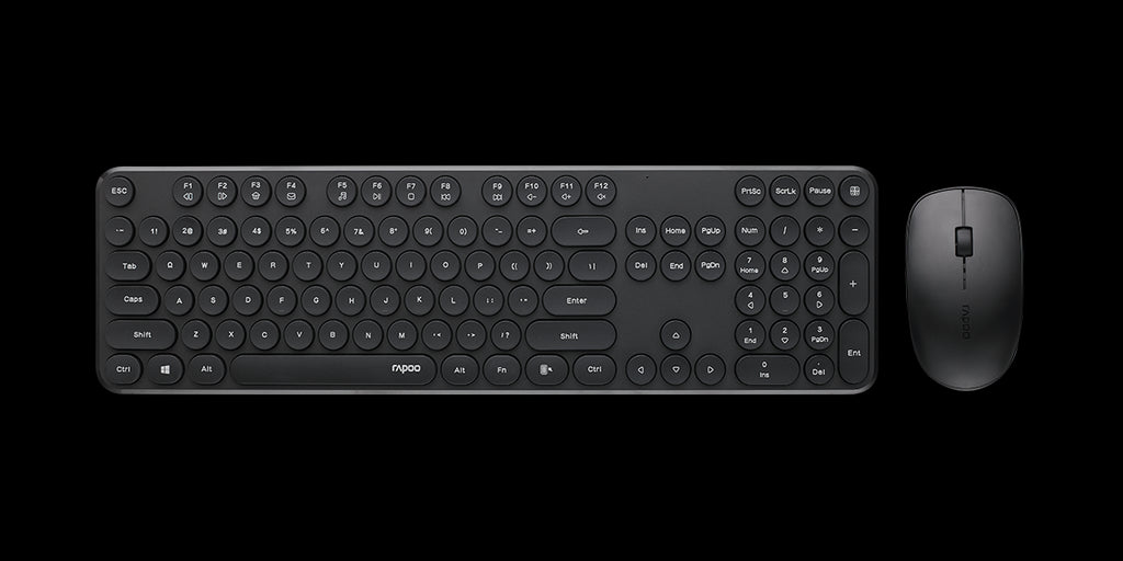 RAPOO Wireless Optical Mouse & Keyboard Black - 2.4G Connection, 10M Range, Spill-Resistant, Retro Style Round Key Cap, 1000DPI - Black