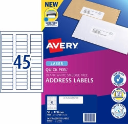 LABEL AVERY LASER L7156 ADDRESS 45UP WHITE PK100 — quality office supplies available at Better Office Supplies.