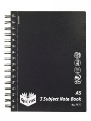 NOTEBOOK SPIRAX P572 PP 3 SUBJECT A5 S/O 300PG BLACK — quality office supplies available at Better Office Supplies.