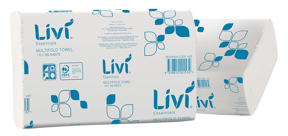 PAPER TOWEL LIVI ESSENTIALS MULTIFOLD 1PLY 200S — quality office supplies available at Better Office Supplies.