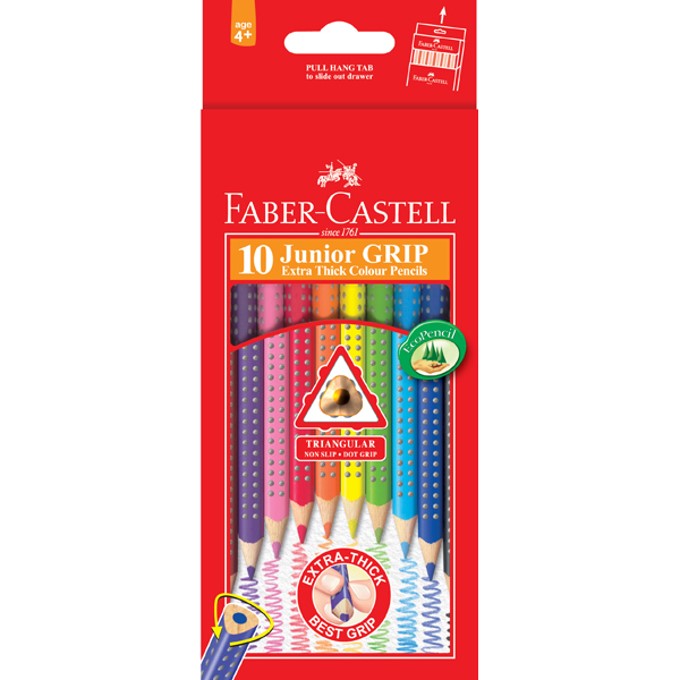 PENCIL COLOURED FABER-CASTELL JUNIOR GRIP TRIANGULAR EXTRA THICK PK10 — quality office supplies available at Better Office Supplies.