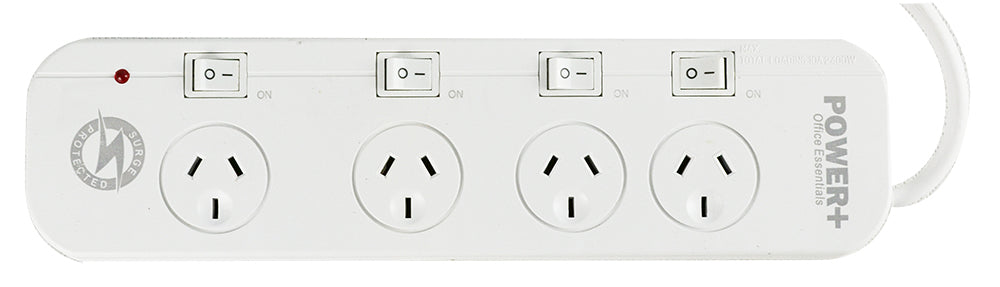 POWERBOARD 4 OUTLET WITH INDIV SWITCH/OVERLOAD PROTECTION/MASTER SWITCH — quality office supplies available at Better Office Supplies.